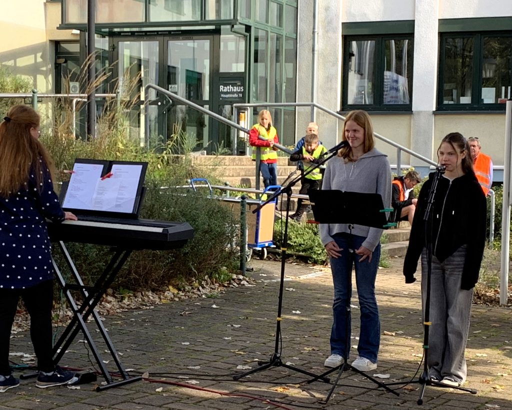 Mit guter Laune, bestem Wetter und eingestimmt vom Gesangsduo der Gesamtschule Neunkirchen-Seelscheid unter Leitung von Frau Biel haben sich die kleinen und großen Radler der 19. Tour der Hilfe am 15. September 2024 vom Rathaus Neunkirchen aus auf ihren Weg nach Allner gemacht.