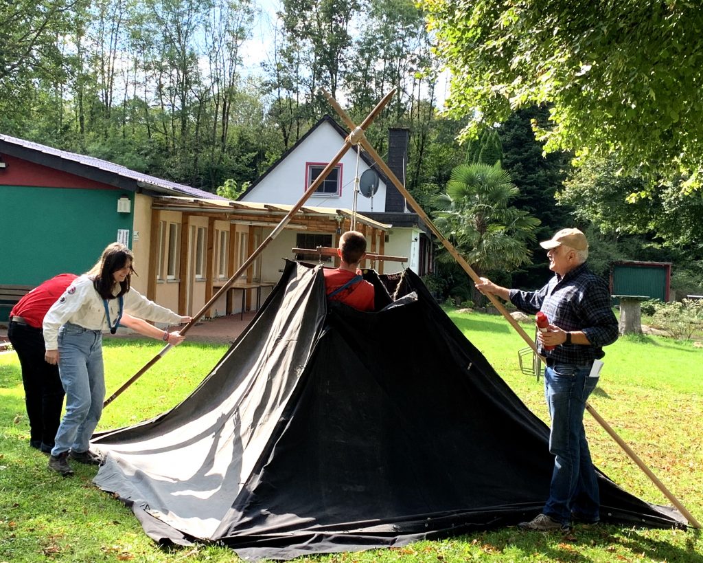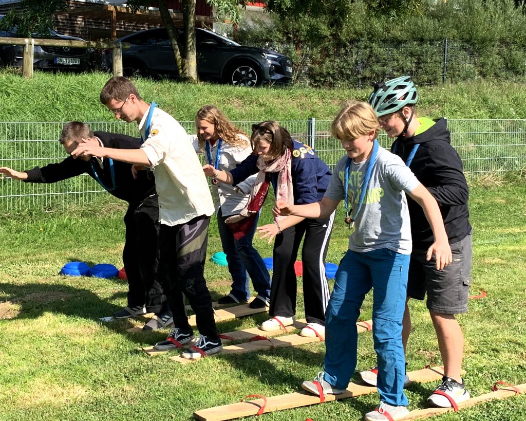 Auf dem Sportplatz in Allner wurden die Teilnehmer zur Schlussveranstaltung begrüßt. Es gab Kaffee, ein herrliches Kuchenbuffet und Würstchen vom Grill. Ein Kaltgetränk durfte natürlich auch nicht fehlen. Die Kinder erprobten mit Freude und Ausdauer die unterschiedlichen Stationen der Aktion „Spiel und Spaß für Kids“ und konnten den Neunkirchener Pfadfindern „Stamm Roter Milan“ beim Aufbau einer Lagerstätte zuschauen.