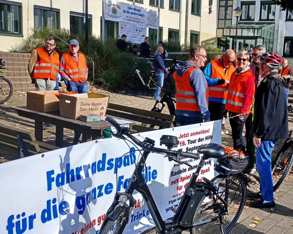 Auch die 19. Tour der Hilfe stand unter dem Motto „Radeln für den guten Zweck“. Der Dank des Lions Clubs geht daher an die teilnehmenden Radler, aber auch an die vielen Sponsoren aus unserer Gemeinde, die die Tour aktiv oder mit Spenden unterstützt haben. Mit dem erfreulichen Erlös kann der Lions Club seine Aktivitäten in der Kinder-und – Jugendarbeit fortsetzen und Projekte wie „Lions hilft vor Ort“ tatkräftig unterstützen. Dafür sagen wir sehr herzlich: „DANKE!“