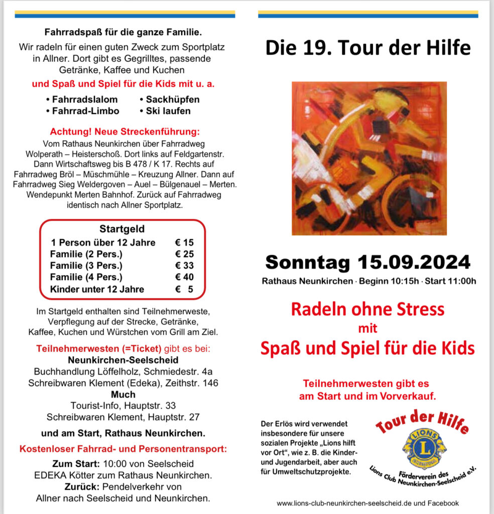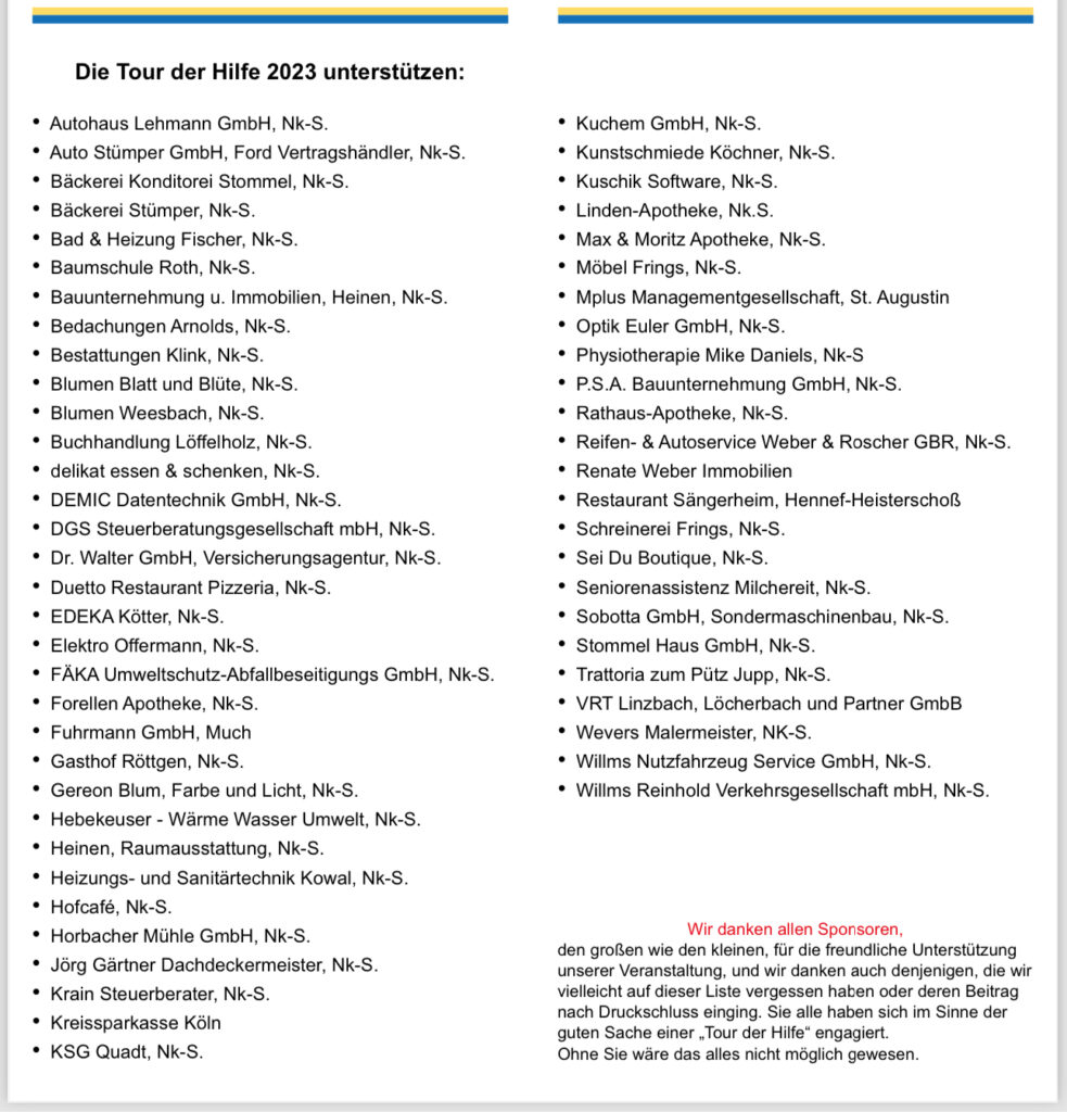 2024 Tour der Hilfe 2024 Von Am 15.09.2024 schwingen wir uns wieder auf das Fahrrad und radeln für den guten Zweck. . unsere Sponsoren: