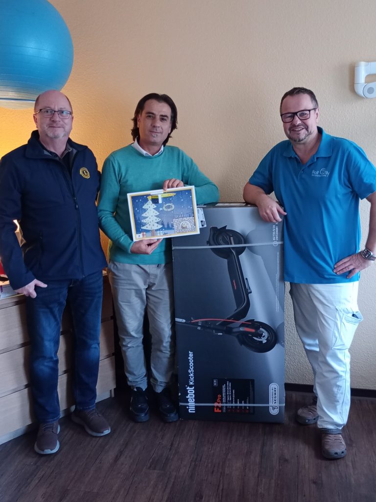 Herr Mohamad Mustafa aus Neunkirchen-Seelscheid nahm seinen Preis in der Praxis für Physiotherapie von Ralf Gilly in Seelscheid entgegen. Das Los mit der Nummer 2663 wurde am Nikolaustag gezogen. Der Gewinn hatte es in sich: ein E-Scooter im Wert von 449,00 Euro, der von Ralf Gilly gesponsort wurde.
